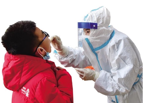 圖為12月18日,西安高新區(qū)丈八街道唐灃社區(qū)核酸檢測(cè)點(diǎn)的醫(yī)務(wù)人員在進(jìn)行核酸采樣。本報(bào)記者 杜瑋攝