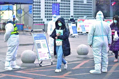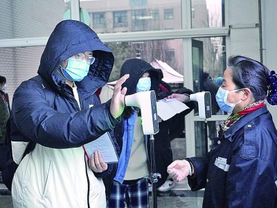 12月25日,考生在西安石油大學(xué)考點測溫。趙喜軍攝/光明圖片