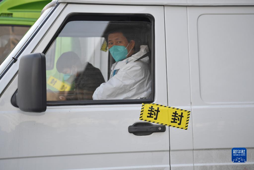 陜藥集團派昂醫(yī)藥公司通過給社會運輸車輛駕駛室貼封條的方式,避免進入園區(qū)的外部車輛人員感染園區(qū)(12月28日攝)。新華社記者 邵瑞 攝