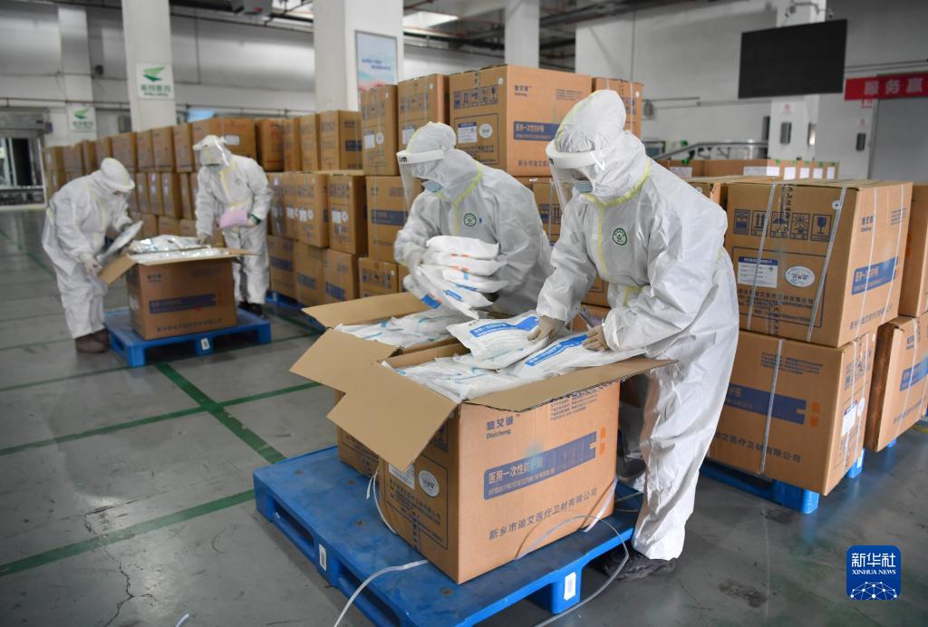 12月28日,陜藥集團派昂醫(yī)藥公司工作人員在查看倉庫內(nèi)的疫情防控防護物資儲備情況。新華社記者 邵瑞 攝