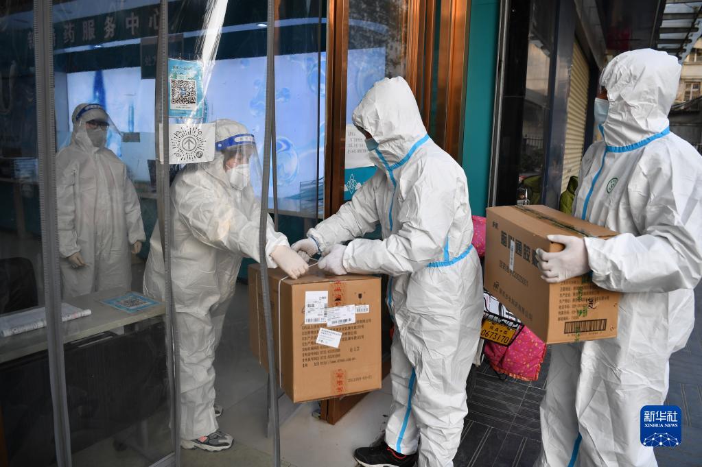 12月28日,陜藥集團派昂醫(yī)藥公司工作人員在向西安市區(qū)一家零售藥店配送藥品。新華社記者 邵瑞 攝