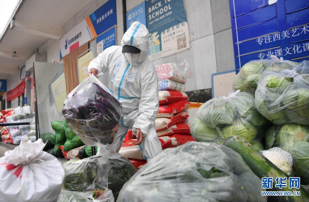 1月4日,志愿者在西安市雁塔區(qū)德善愛(ài)心共享廚房打包食物。新華社記者 張博文 攝