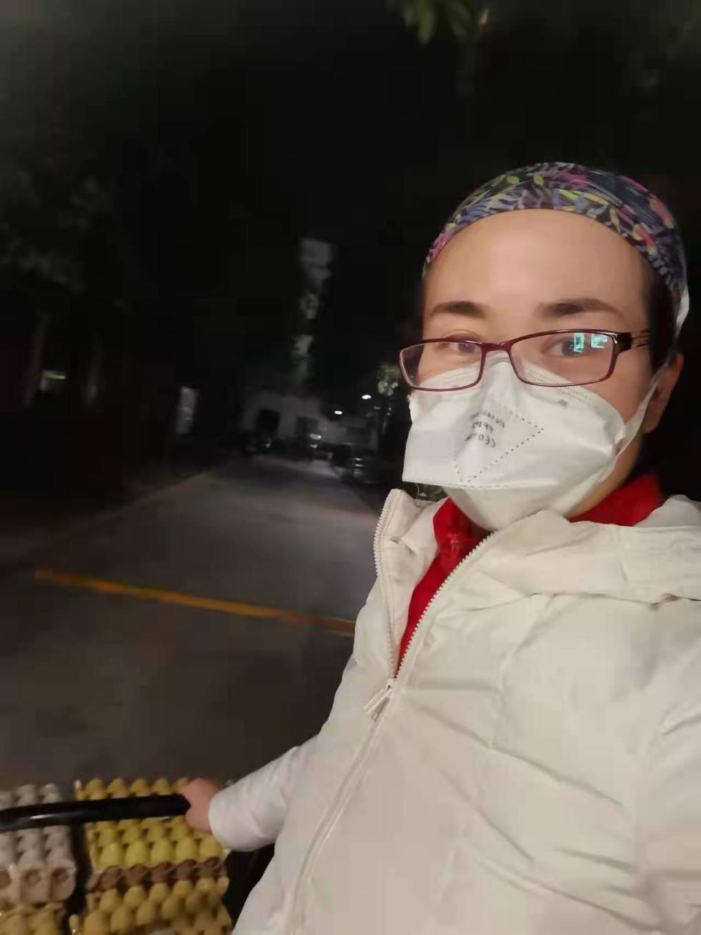 為解決大家的吃飯問題,“興盛優(yōu)選平臺(tái)”的供應(yīng)商通過各方協(xié)調(diào),為社區(qū)居民籌備生活物資,滿載雞蛋的第一車物資于12月29日晚10點(diǎn)鐘到達(dá)小區(qū),由于疫情管控,物業(yè)不允許排隊(duì)領(lǐng)雞蛋,只能一戶戶配送,看到能為大家服務(wù)我高興不已,自告奮勇并立即加入物資配送的大軍中。我生平第一次使用板車,而且拉的是雞蛋,生怕把雞蛋打散,所以我使出全身力氣在平衡那個(gè)板車,雞蛋拉到單元門口然后挨家挨戶的敲門配送,最后送完所有雞蛋已是滿身大汗,回家洗漱完躺在床上時(shí)已是凌晨了,看到到大家領(lǐng)到雞蛋的高興樣子,讓我覺得再累都是值得的。