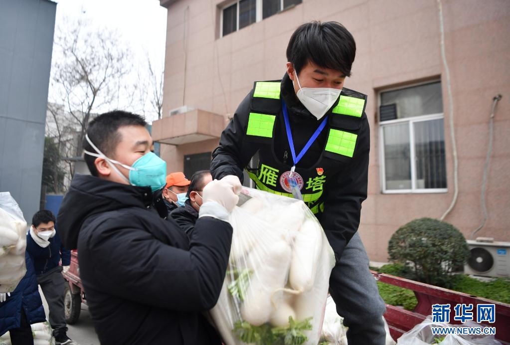 退役軍人志愿突擊隊隊員搬運防疫物資。新華社記者 張博文 攝