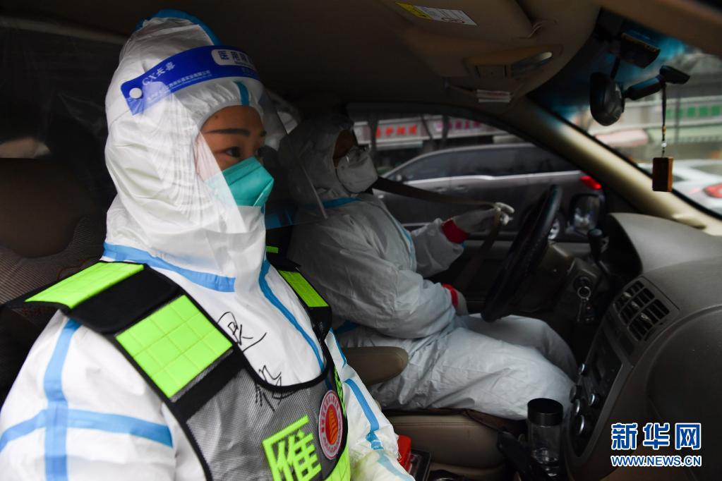 退役軍人志愿突擊隊隊員(左)準備出發(fā)轉運核酸檢測樣本。新華社記者 張博文 攝