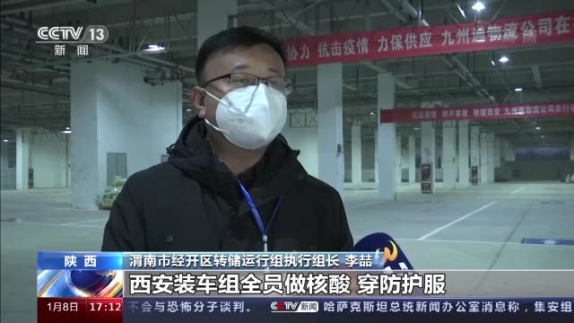 渭南市經(jīng)開區(qū)轉(zhuǎn)儲(chǔ)運(yùn)行組執(zhí)行組長(zhǎng) 李喆:專車通道、裝卸組人員是分離的,西安這個(gè)裝車組全員做核酸、穿防護(hù)服。西安車輛過來,駕駛員不下車,全程貼封條,24小時(shí)不間斷兩班倒。