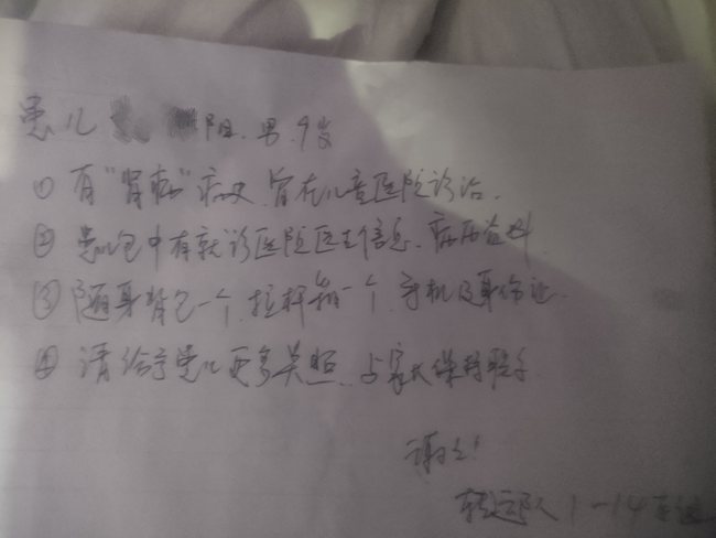 陽陽(化名)的交接單。西安醫(yī)學院第二附屬醫(yī)院供圖