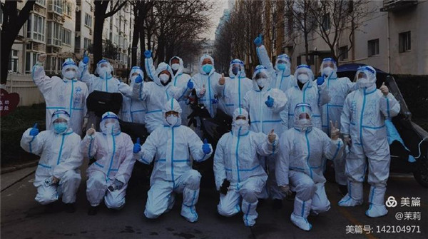 他們不是白衣天使,卻活躍在抗疫前線,他們不是病毒學(xué)家,卻想方設(shè)法抑制病毒,他們分工明確,井然有序。協(xié)醫(yī)組穿上防護(hù)服,在凜冽的寒風(fēng)中登記信息;引導(dǎo)組手持?jǐn)U音器,一遍遍組織業(yè)主有序核酸;秩序組各盡其職,助力核酸檢測高效完成;物資組提前摸排,保障獨(dú)居老人和困難家庭正常生活……連著十幾天的高強(qiáng)度工作,沒有一個(gè)黨員和志愿者退縮,他們爭先恐后、不計(jì)得失、日以繼夜的守護(hù)著我們的家園。