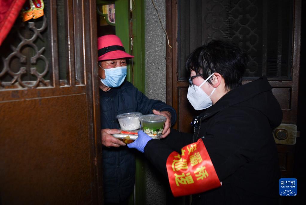 1月12日,三家村工作人員準(zhǔn)備為一戶居民派送午餐。新華社記者 張博文 攝