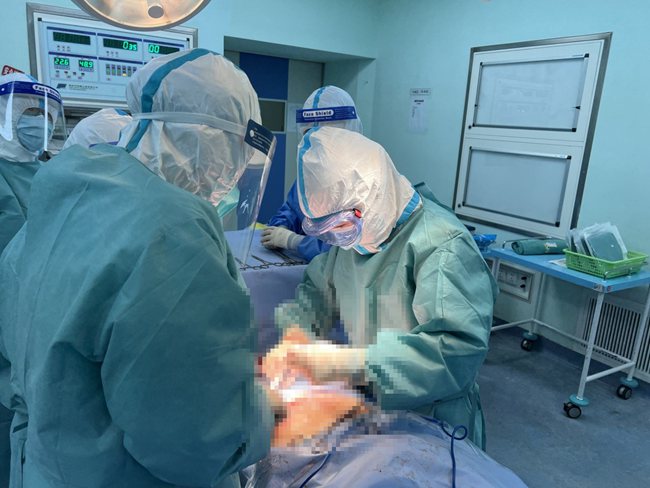 同時(shí),護(hù)士長王沛第一時(shí)間打開隔離患者專用通道,再一次檢查確認(rèn)隔離病房的設(shè)備情況,做好接收患者的準(zhǔn)備。病房醫(yī)生則積極聯(lián)系手術(shù)室做好無核酸急診手術(shù)準(zhǔn)備,僅30分鐘,孕婦就被接往手術(shù)室。