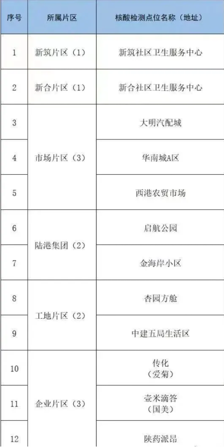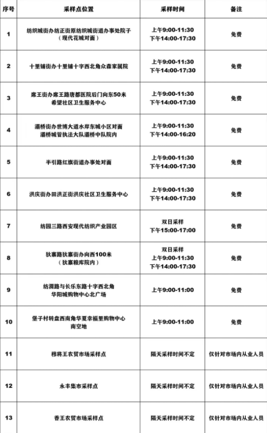 結合當前疫情防控總體形勢,為進一步做好復工復產(chǎn)和社會保供等方面保障工作,我市這些區(qū)域設置核酸檢測采樣點位,滿足市民需求。