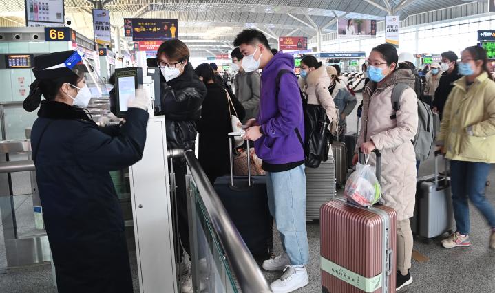 1月16日,西安北客站,離校返鄉(xiāng)的西安高校學(xué)生在排隊進站。新華社記者 陶明 攝