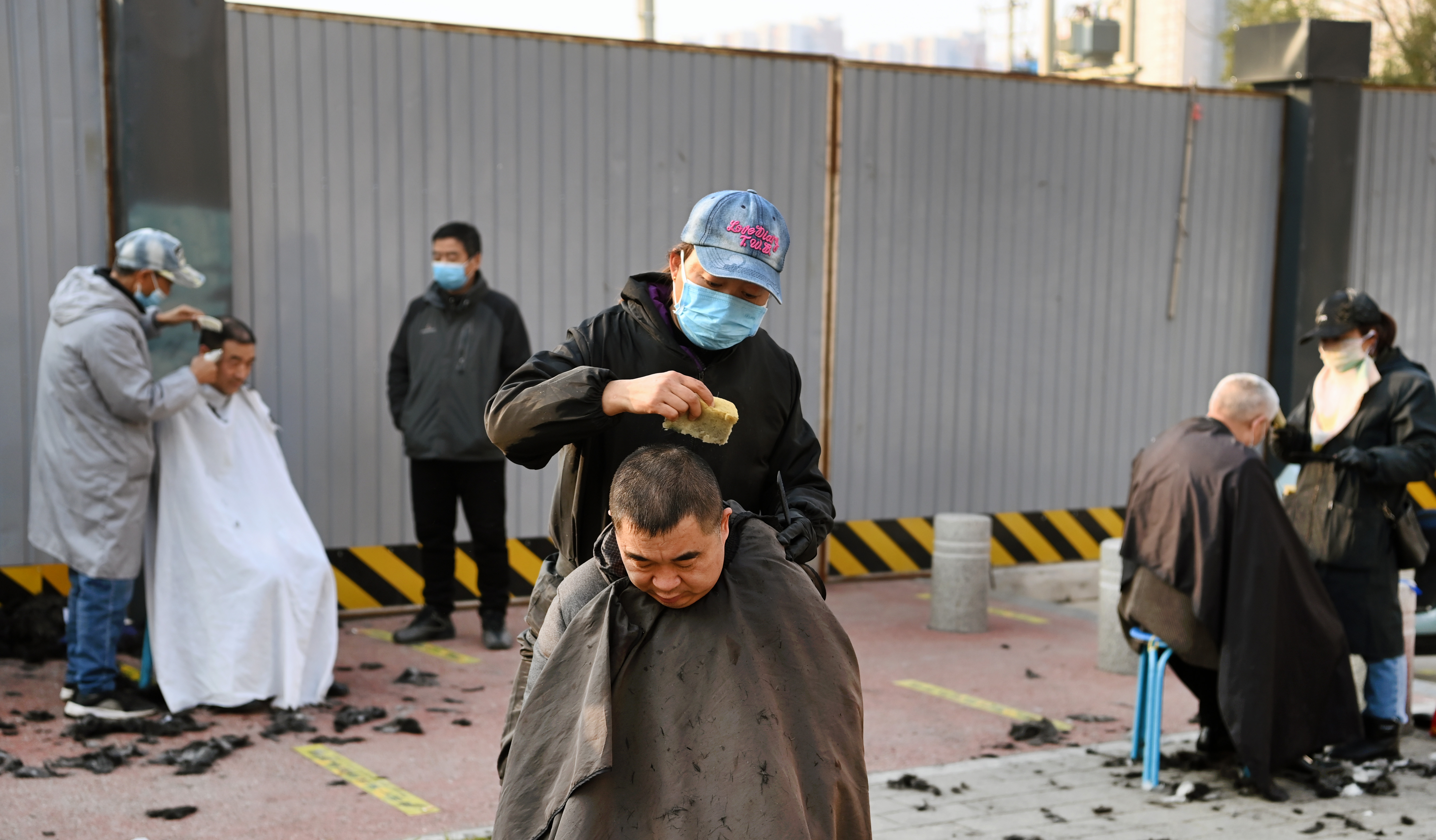 1月17日,西安市未央?yún)^(qū)一家理發(fā)店在路邊設(shè)點(diǎn),方便居民理發(fā)。