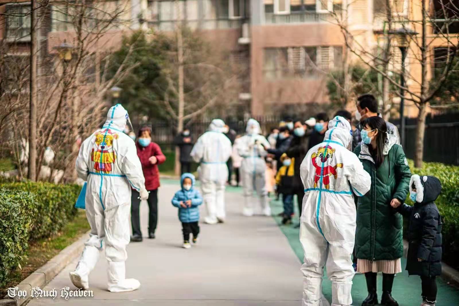 18日,在小區(qū)核酸篩查現(xiàn)場,穿著虎年新春主題圖案防護服的“大白”引發(fā)了全場圍觀。小朋友希望和他們合影,小區(qū)里的攝影愛好者也拿著專業(yè)的器材來拍攝,還制作成短視頻發(fā)在業(yè)主群里分享快樂。大家紛紛表示“原來就快要到虎年了!”“年的味道一下子濃起來了!”有的小朋友采完樣都不愿意上樓,纏著爸爸媽媽問:“下次做核酸還能見到小老虎嗎?”