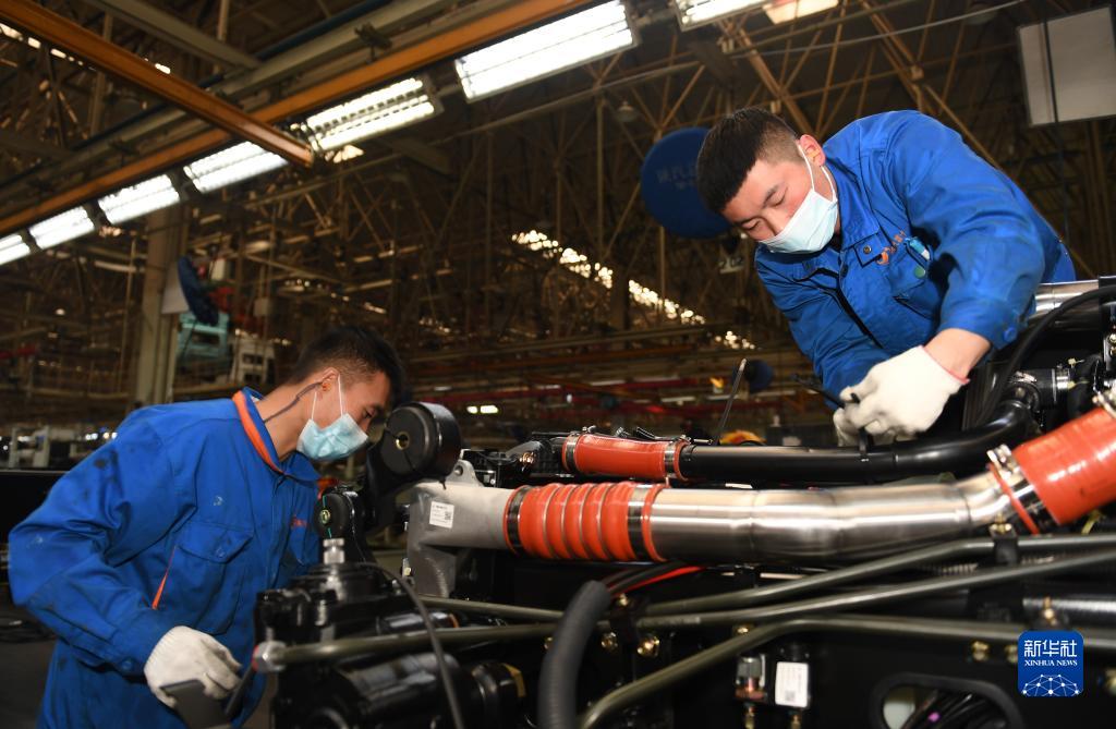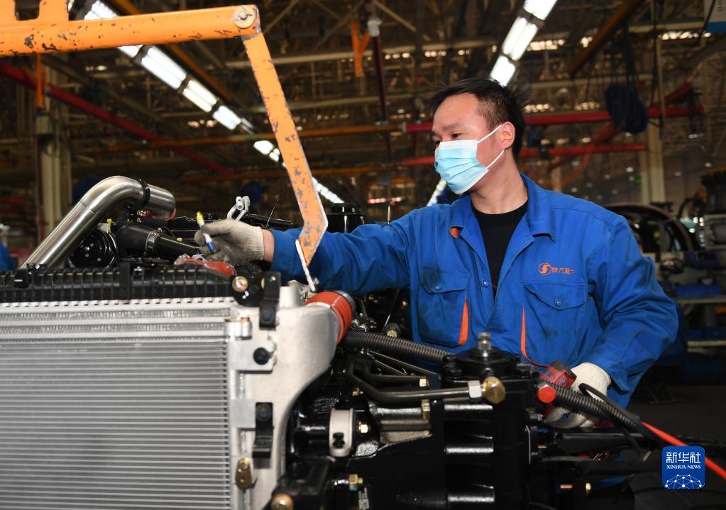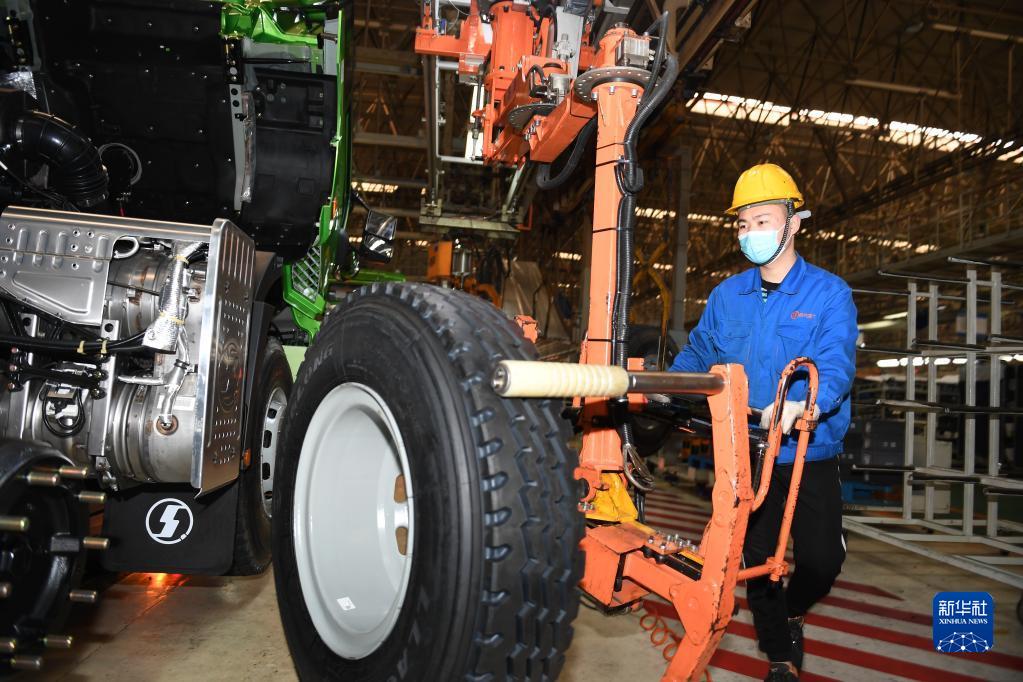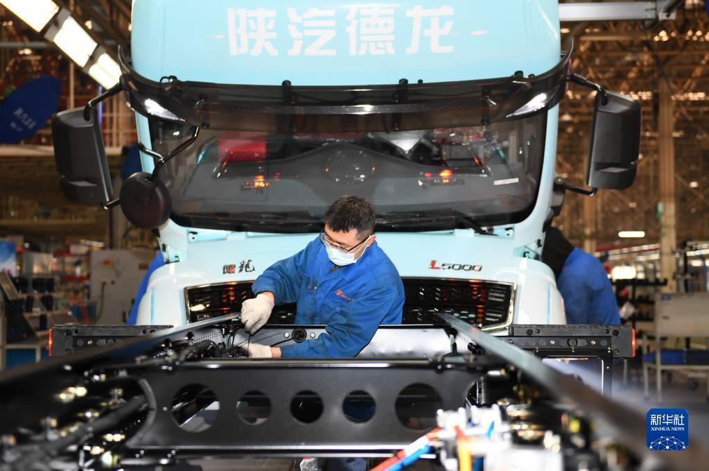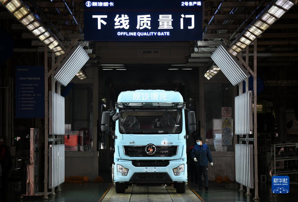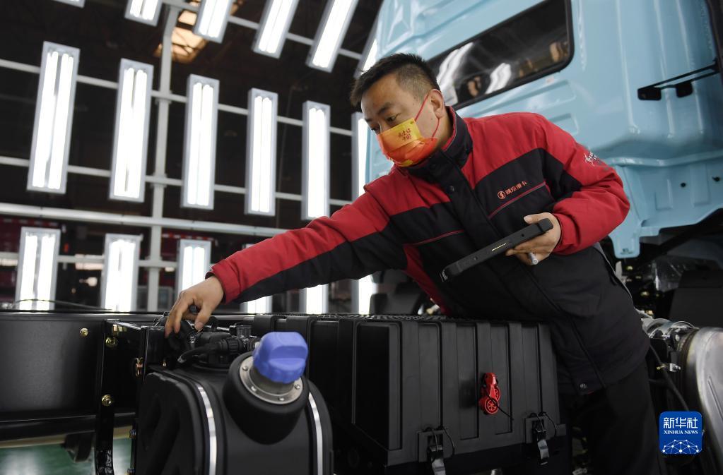 1月20日,工作人員在陜西汽車(chē)控股集團(tuán)有限公司總裝車(chē)間進(jìn)行重型卡車(chē)驗(yàn)收。新華社記者 李一博 攝