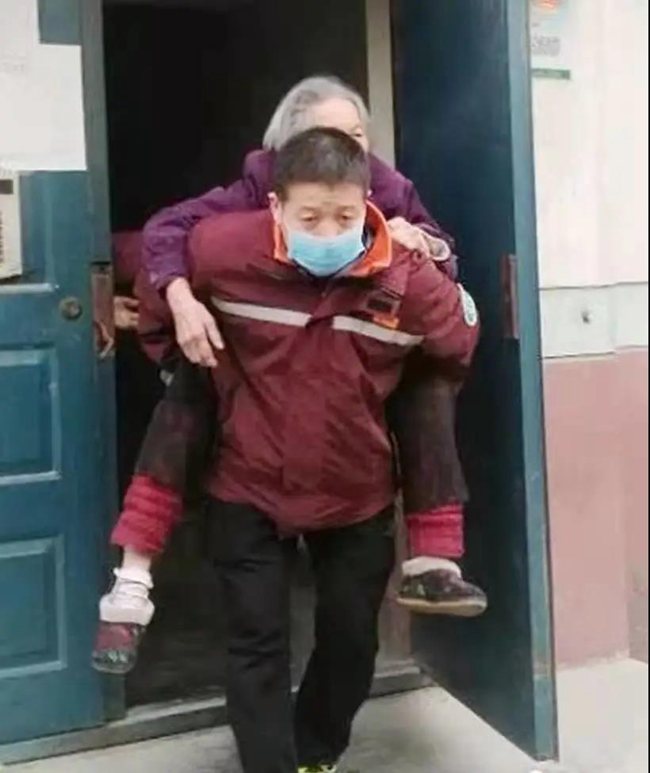 市內(nèi)某小區(qū)一名獨居老人急需就醫(yī),120急救車到達后發(fā)現(xiàn)其居住單元老舊,擔(dān)架根本無法使用,情急之下,司機楊明背起老人快速將其轉(zhuǎn)入救護車。