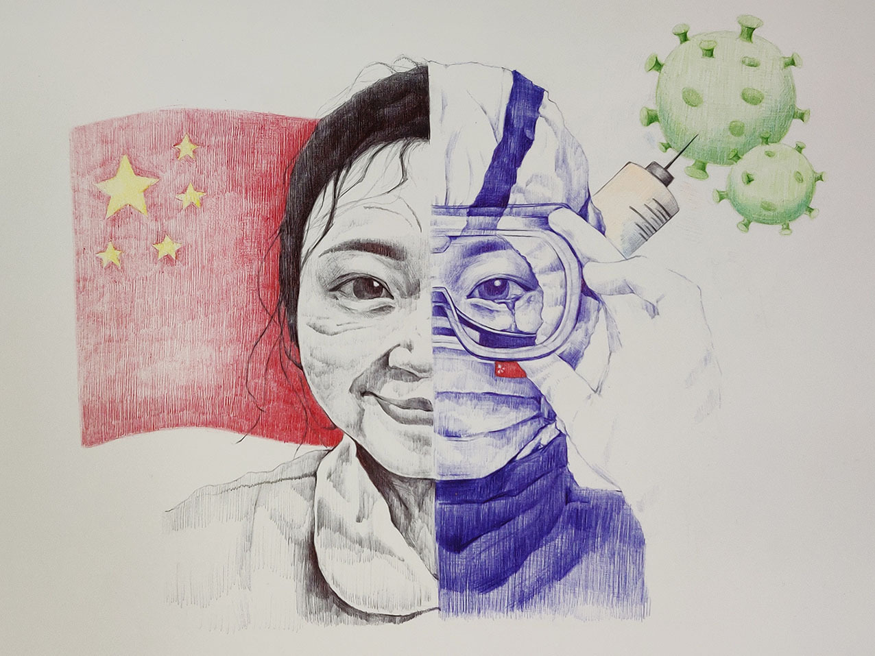2021年12月,新冠肺炎疫情在西安突然暴發(fā),面對(duì)突如其來(lái)的疫情和嚴(yán)峻復(fù)雜的防控形勢(shì),在加強(qiáng)落實(shí)疫情防控、保障師生健康的同時(shí),西安工程大學(xué)服裝與藝術(shù)設(shè)計(jì)學(xué)院積極應(yīng)對(duì),組織全院師生有序、規(guī)范開(kāi)啟2021年秋季期末課程結(jié)課的線上教學(xué)。任課教師及時(shí)調(diào)整結(jié)課作業(yè)主題,充分利用視覺(jué)傳達(dá)設(shè)計(jì)專業(yè)特點(diǎn),組織同學(xué)們嚴(yán)謹(jǐn)認(rèn)真、激情飽滿地用畫(huà)筆以藝抗疫,致敬最美逆行者!
