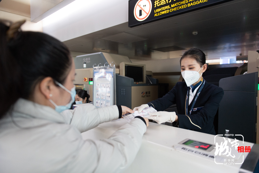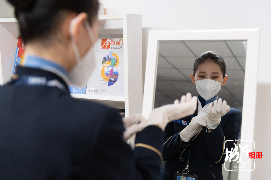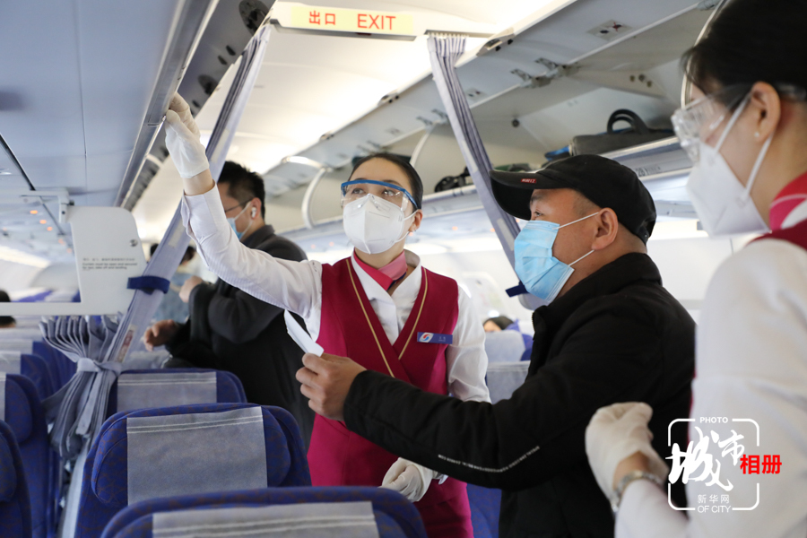 回憶新冠肺炎疫情第一年的春運(yùn),賀佳麗說,空乘需要直接接觸過往人員,最初還是很擔(dān)心,但是為了守好這道安全“關(guān)”,同事們都拼盡全力。新華網(wǎng) 耿駿宇 攝 陳雨 文