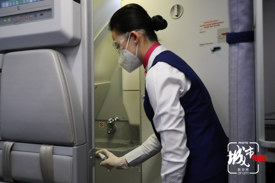 為飛機(jī)的廁所等重要部位進(jìn)行消毒也是徐秋月和同事們的必備課。除了這些日常的防護(hù),徐秋月還要組織乘務(wù)組進(jìn)行應(yīng)急演練,確保每一位乘務(wù)員在遇到發(fā)熱乘客時都能立即正確應(yīng)對。新華網(wǎng)發(fā)(黃勇 攝)陳雨 文