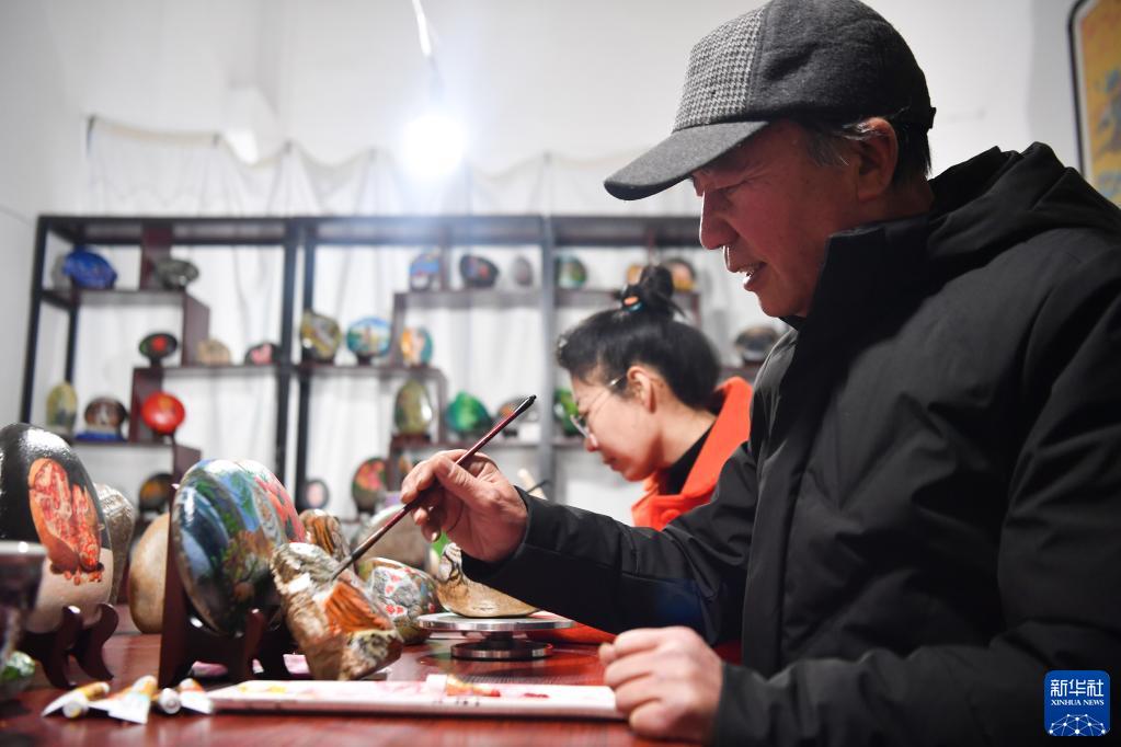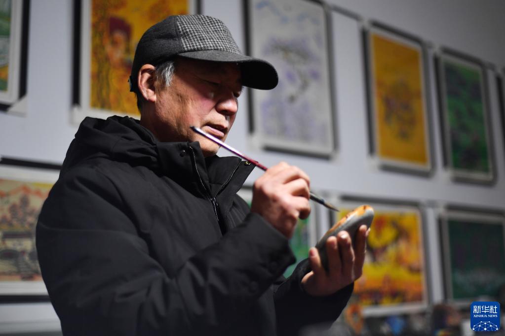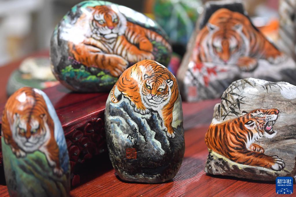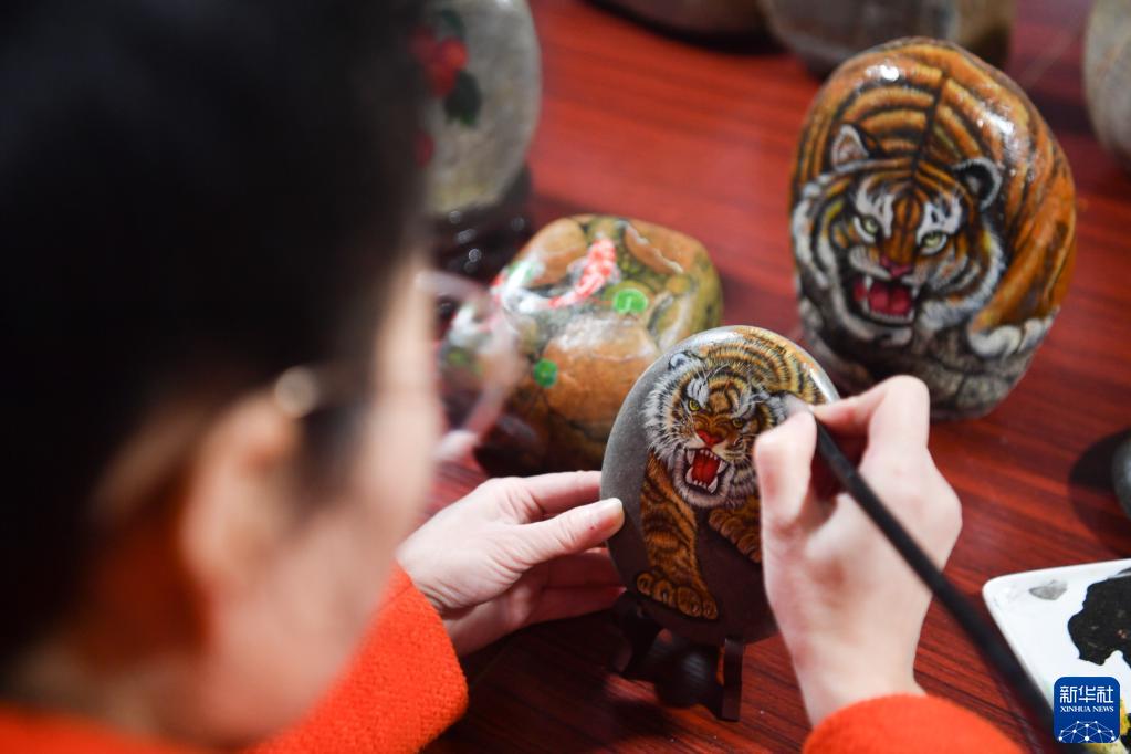農(nóng)歷虎年將至,陜西省西安市鄠邑區(qū)的農(nóng)民畫(huà)家以石材為畫(huà)布,創(chuàng)作虎主題作品迎接新春佳節(jié)。