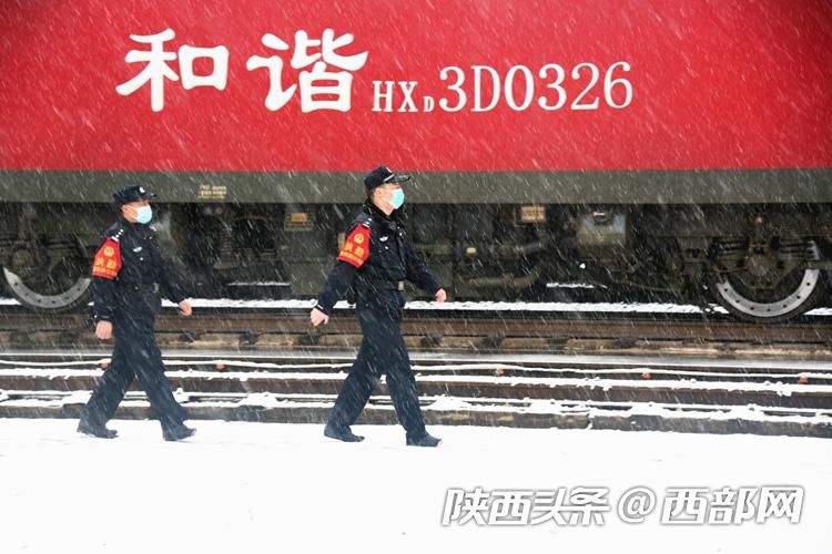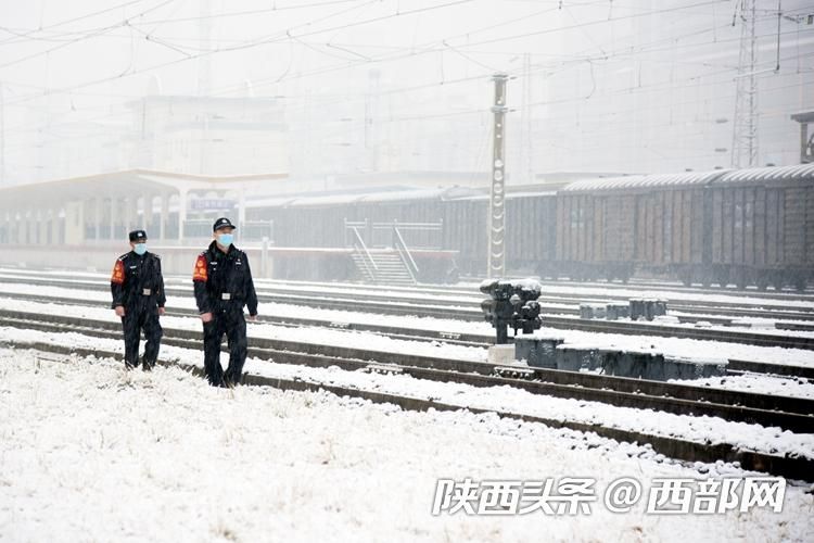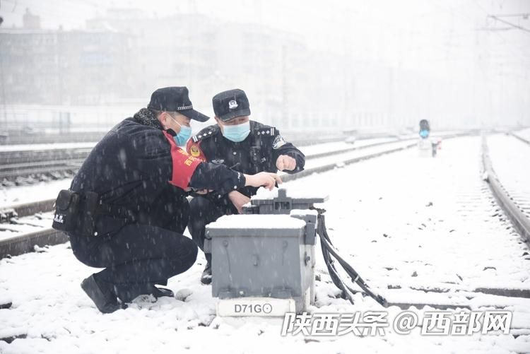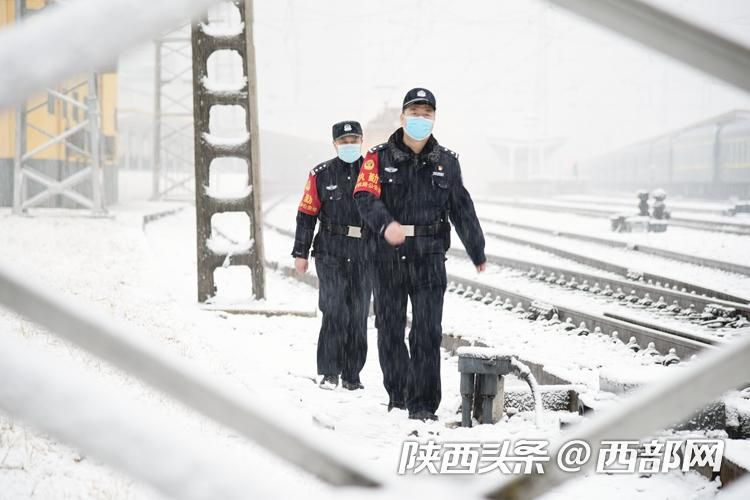 西部網(wǎng)訊(記者 馬晴茹 通訊員 張?chǎng)?田甜) 1月27日,陜西省寶雞市迎來大范圍雨雪冰凍天氣,恰逢春運(yùn)出行高峰,西安鐵路公安處寶雞站派出所民警頂風(fēng)冒雪,排查行車設(shè)備、重點(diǎn)部位的治安安全隱患,全力確保雪天鐵路運(yùn)輸安全暢通,旅客出行平安。