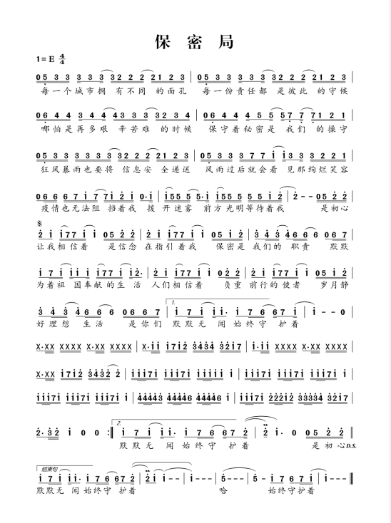慶祝建黨百年獲獎(jiǎng)歌曲作品選集——《保密局》詞曲。