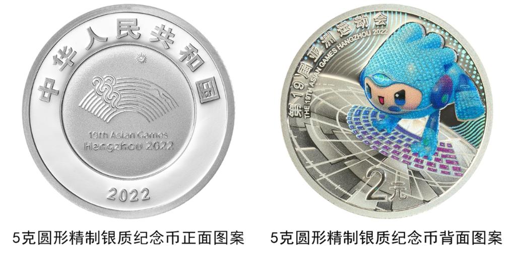 5克圓形銀質(zhì)紀(jì)念幣背面圖案為第19屆亞洲運(yùn)動會吉祥物電子競技運(yùn)動造型,輔以互聯(lián)網(wǎng)科技符號、跑道等元素裝飾組合設(shè)計(jì),并刊“第19屆亞洲運(yùn)動會”等字樣。該紀(jì)念幣含純銀5克,最大發(fā)行量10萬枚。