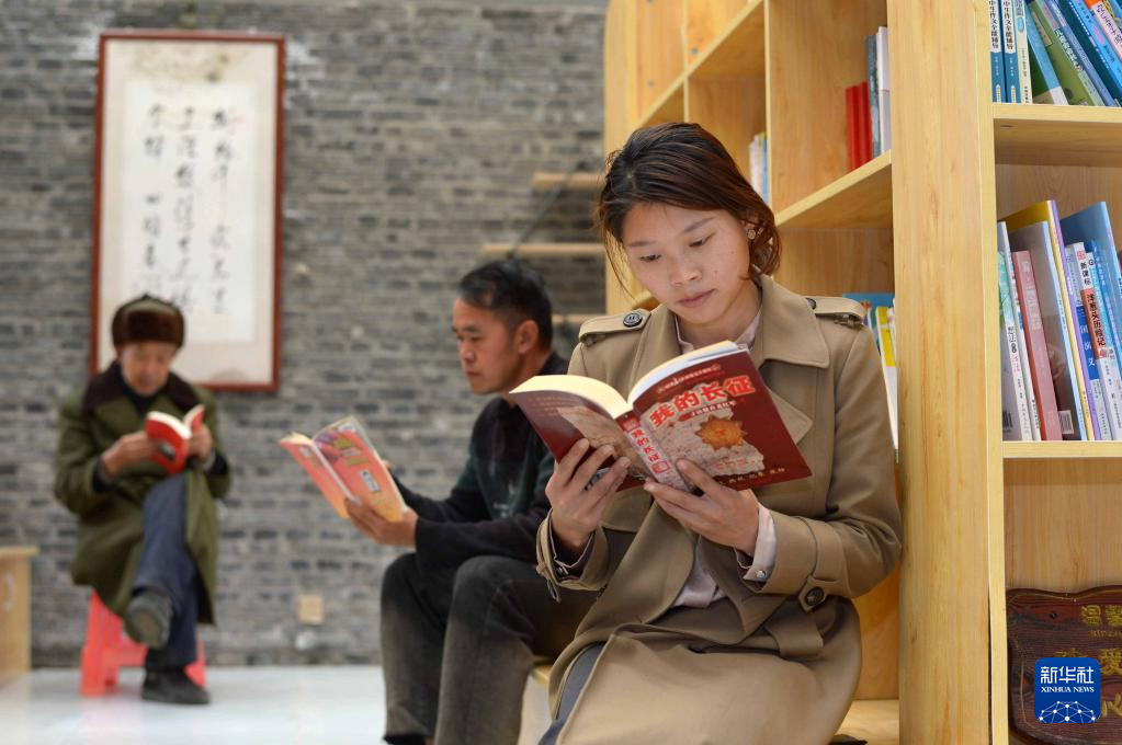 4月19日,人們?cè)谕╄骺h九壩鎮(zhèn)山堡社區(qū)紅色書(shū)吧閱讀。