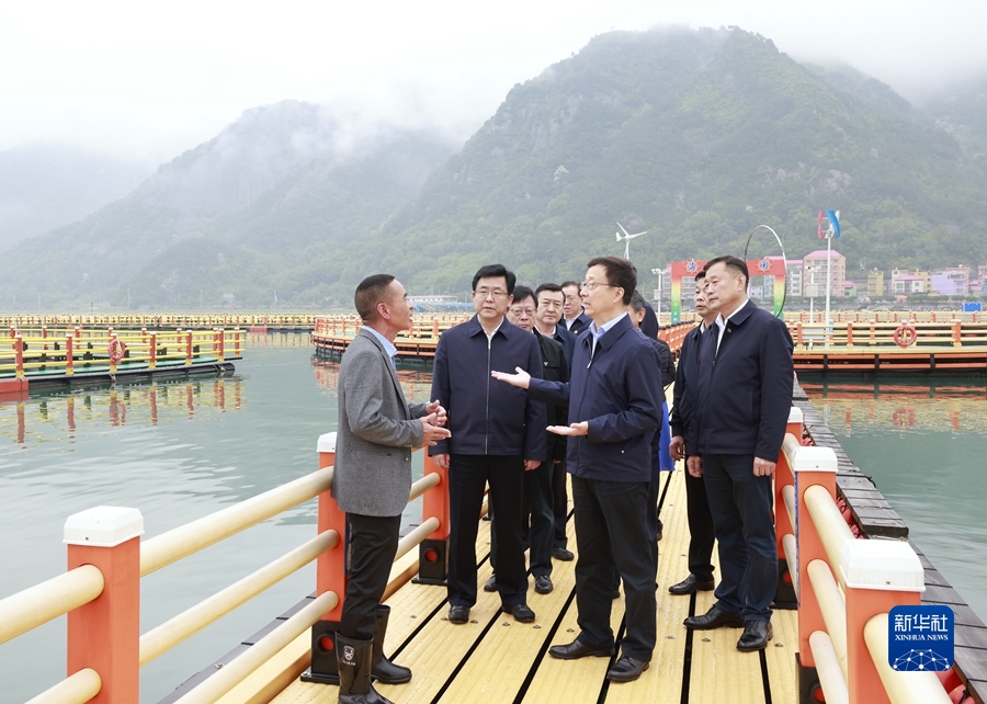 5月23日至24日,中共中央政治局常委、國務院副總理韓正在福建寧德、福州、漳州調研。這是5月23日,韓正在福安“藍海漁歌”海上綜合整治展示平臺調研。新華社記者 丁林 攝