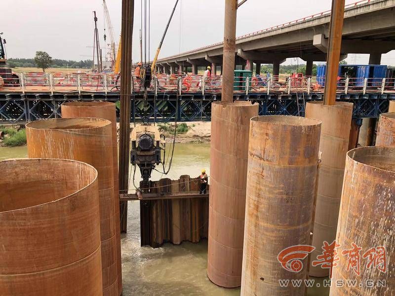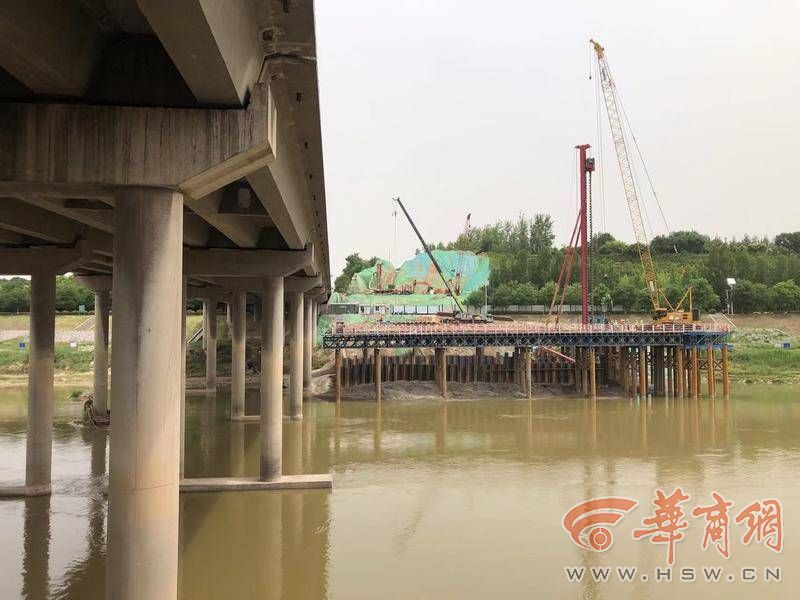 大橋上跨渭河,濕地保護(hù)、水土保持及文明施工要求高。華商報(bào)記者在現(xiàn)場看到,3號墩施工現(xiàn)場,深基坑需開挖25米深。“我們用的是五層鋼支撐圍檁,3號墩是開挖最深的。”京昆改擴(kuò)建六標(biāo)段項(xiàng)目書記馬俊說,在河道內(nèi)的1、2號墩,樁基、承臺施工難度大、工序多,3號到7號橋墩承臺在地面以下7-17米,承臺施工深基坑開挖支護(hù)風(fēng)險(xiǎn)高、難度大。