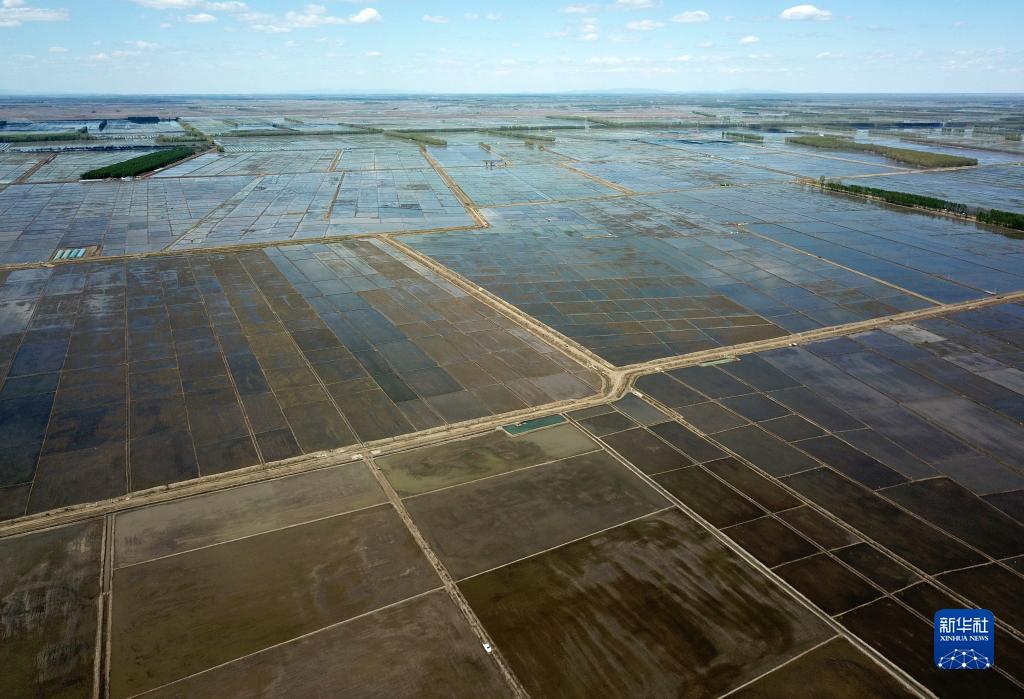 這是5月18日拍攝的北大荒集團(tuán)七星農(nóng)場有限公司的稻田(無人機(jī)照片)。新華社記者 王建威 攝