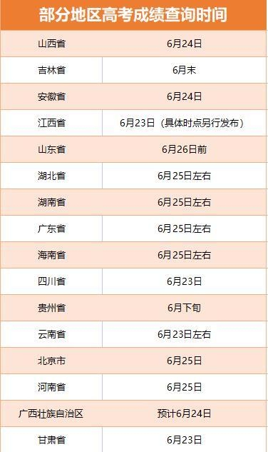 目前,已經(jīng)有部分省份公布了今年高考的成績(jī)查詢時(shí)間。