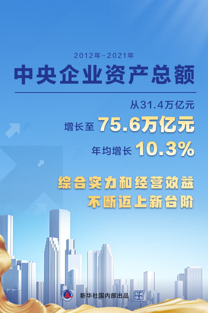 中央企業(yè)資產(chǎn)總額從2012年底的31.4萬(wàn)億元增長(zhǎng)至2021年底的75.6萬(wàn)億元