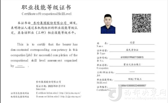 沈瑩,是東嶺冶煉公司的一名技術(shù)員,去年11月,他通過(guò)參加公司舉辦的新型學(xué)徒制培訓(xùn)班,考取了“重冶火法冶煉工”中級(jí)工職業(yè)技能等級(jí)證書,不僅得到了政府1500元獎(jiǎng)勵(lì)補(bǔ)貼,還在今年3月被公司從技術(shù)員提拔為車間技術(shù)副主任助理。