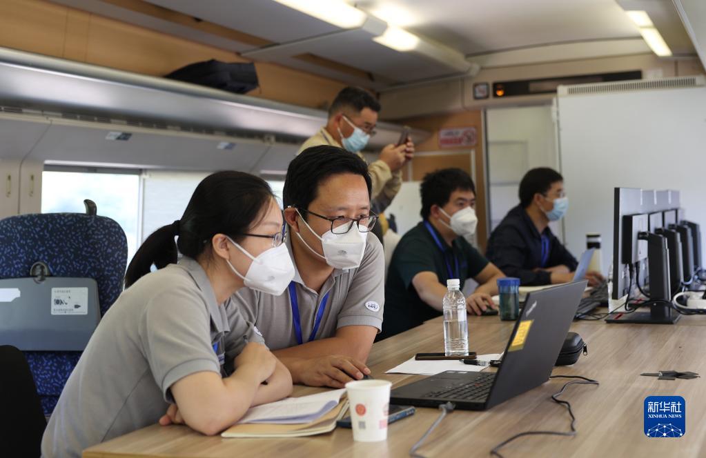 8月23日,工作人員在彌蒙高鐵綜合檢測(cè)車內(nèi)工作。新華社發(fā)(何呂鵬 攝)