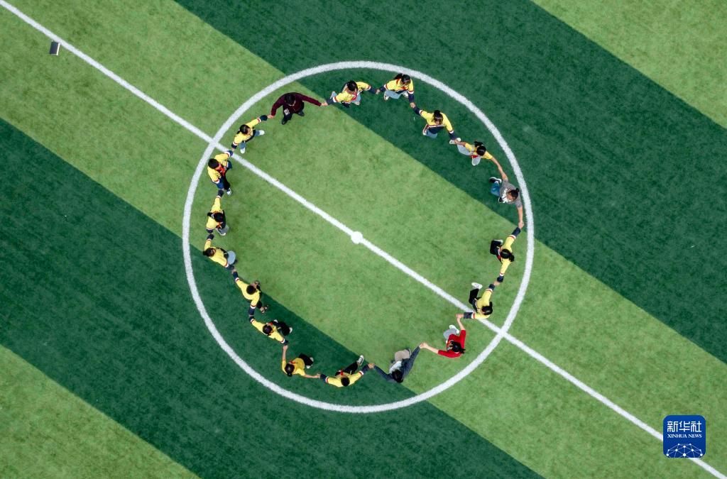 9月1日,貴州省貴陽市開陽縣第一小學學生在跳自編舞《天天向上》(無人機照片)。新華社發(fā)(袁福洪 攝)