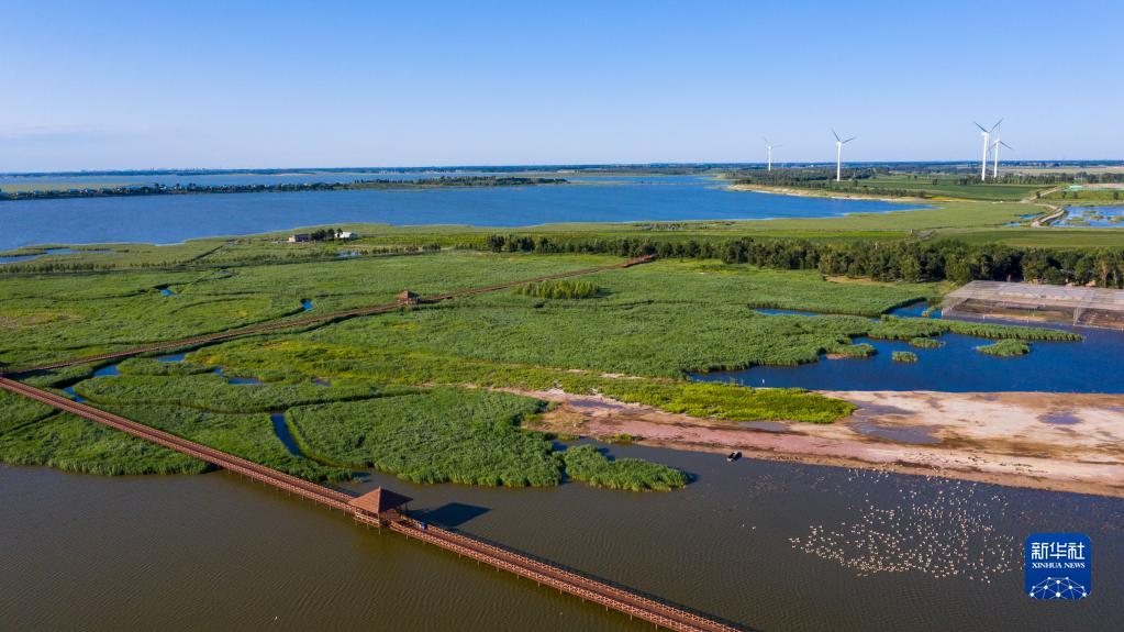 這是查干湖濕地(2020年7月20日攝,無人機(jī)照片)。新華社記者 張楠 攝