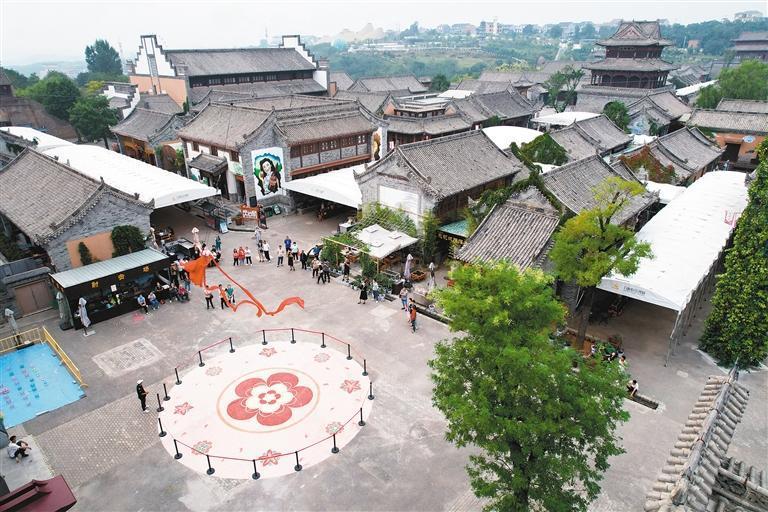 近日,游客在白鹿原影視城內游覽(無人機照片)。