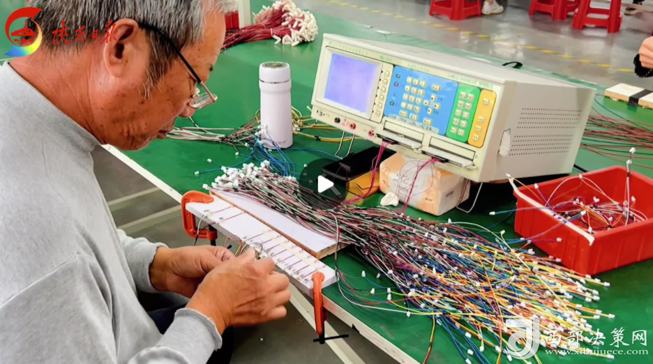 9月27日,譚壩鎮(zhèn)松壩社區(qū)。在安康歐利科精密電子科技有限公司新社區(qū)工廠寬敞明亮的車間里,工人們正熟練地進(jìn)行著電子線束生產(chǎn)流程的各項(xiàng)工作,隨處可見紅綠黃黑各種顏色的電子線束。隨著檢測設(shè)備顯示“良品”,一根根連接合格的電子線束“奔”向下一道工序。