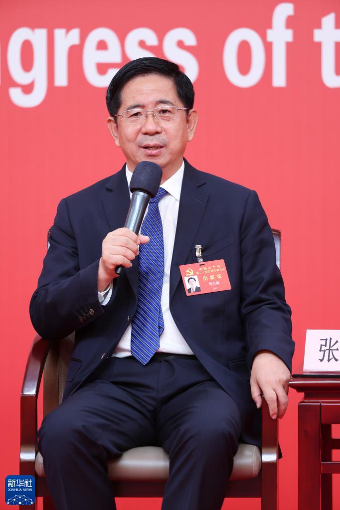 10月18日,中國共產(chǎn)黨第二十次全國代表大會新聞中心舉行集體采訪,請北京、天津、河北、山西、內(nèi)蒙古、遼寧、吉林代表團新聞發(fā)言人出席,介紹代表團學(xué)習(xí)討論二十大報告情況,并回答記者提問。這是山西省委常委、常務(wù)副省長張吉福在回答記者提問。新華社記者 陳建力 攝