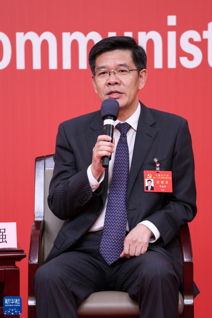 10月18日,中國共產(chǎn)黨第二十次全國代表大會新聞中心舉行集體采訪,請北京、天津、河北、山西、內(nèi)蒙古、遼寧、吉林代表團新聞發(fā)言人出席,介紹代表團學(xué)習(xí)討論二十大報告情況,并回答記者提問。這是內(nèi)蒙古自治區(qū)黨委常委、自治區(qū)常務(wù)副主席黃志強在回答記者提問。新華社記者 張玉薇 攝