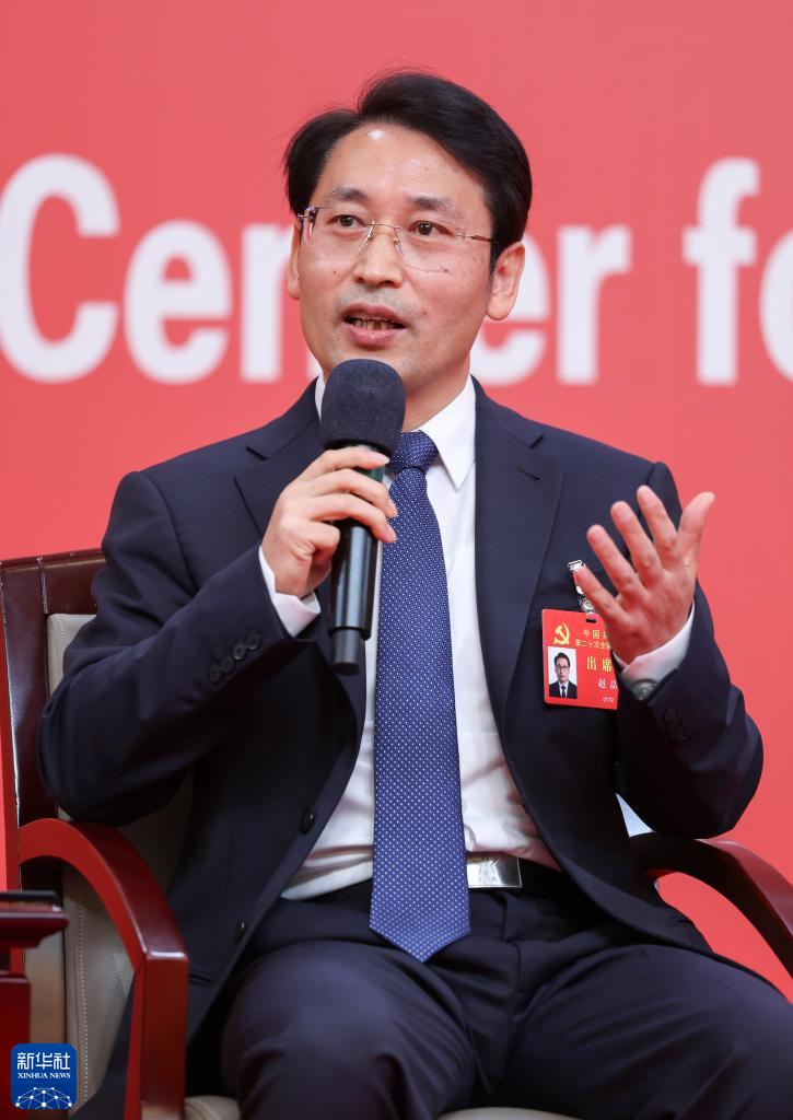 10月18日,中國共產(chǎn)黨第二十次全國代表大會新聞中心舉行集體采訪,請北京、天津、河北、山西、內(nèi)蒙古、遼寧、吉林代表團新聞發(fā)言人出席,介紹代表團學(xué)習(xí)討論二十大報告情況,并回答記者提問。這是北京市委常委、秘書長趙磊在回答記者提問。新華社記者 陳建力 攝