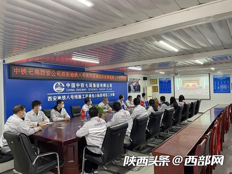 中鐵七局西安地鐵八號線項(xiàng)目部收看黨的二十大開幕會。