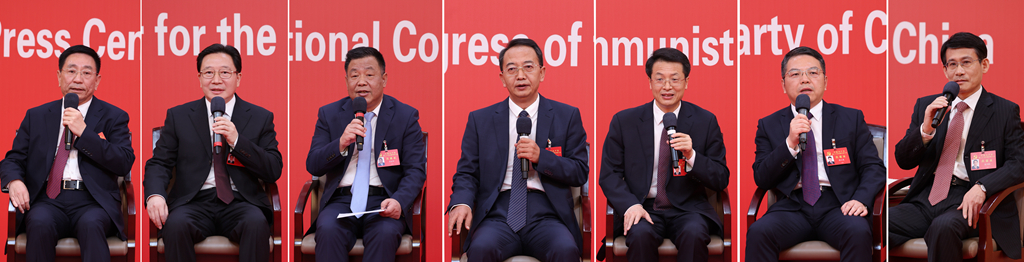 這7位新聞發(fā)言人是:山東省委常委、宣傳部部長白玉剛,河南省委副書記、政法委書記周霽,湖北省委常委、宣傳部部長許正中,湖南省委常委、宣傳部部長楊浩東,廣東省委常委、常務(wù)副省長張虎,廣西壯族自治區(qū)黨委常委、宣傳部部長孫大光,海南省委常委、常務(wù)副省長沈丹陽。他們結(jié)合實(shí)際,講述了黨的十八大以來,各地在經(jīng)濟(jì)發(fā)展、民生改善、生態(tài)文明等方面取得的歷史性成就、發(fā)生的歷史性變革。他們表示,連日來,各代表團(tuán)認(rèn)真學(xué)習(xí)討論黨的二十大報(bào)告,談體會、談?wù)J識、談感受,大家一致認(rèn)為,報(bào)告鼓舞人心、催人奮進(jìn)。代表們完全贊成、堅(jiān)決擁護(hù)這個報(bào)告,并表示未來要在各自的崗位上努力拼搏、銳意進(jìn)取,給黨和人民交上一份更加滿意的答卷。
