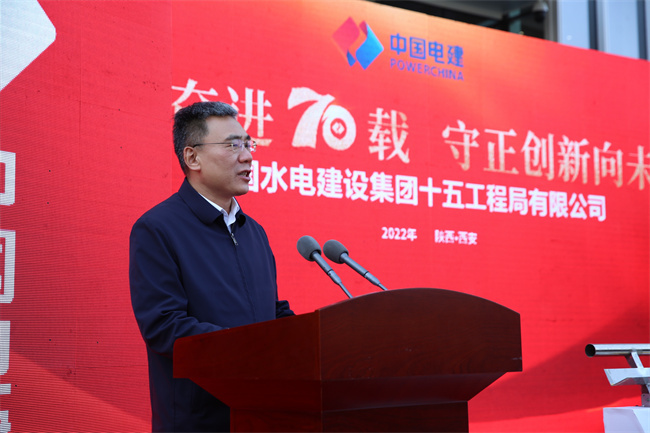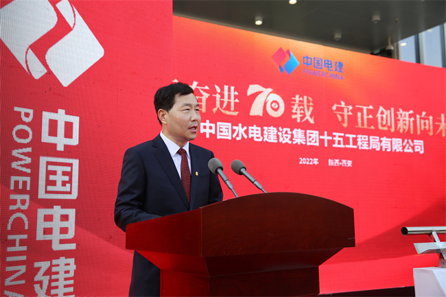 水電十五局黨委書(shū)記、董事長(zhǎng)梁向峰發(fā)表致辭。他指出,70年來(lái)水電十五局緊緊跟隨共和國(guó)的腳步,以自帶風(fēng)雷的氣概與共和國(guó)一起成長(zhǎng),數(shù)代十五局人歷經(jīng)坎坷卻勇毅向前,在祖國(guó)大地建起了一項(xiàng)項(xiàng)雄美的工程!特別是黨的十八大以來(lái)的10年,著力推動(dòng)企業(yè)高質(zhì)量發(fā)展,大力提升內(nèi)生能力,大力擴(kuò)展業(yè)務(wù)布局,在區(qū)域及領(lǐng)域均形成大土木的業(yè)務(wù)結(jié)構(gòu),在產(chǎn)業(yè)鏈上不斷加快投資業(yè)務(wù)、總承包業(yè)務(wù)、融資加總承包業(yè)務(wù)等商業(yè)模式的構(gòu)建,國(guó)際業(yè)務(wù)遍布全球多個(gè)國(guó)家和地區(qū),總量占比全局的四分之一。以延安引黃、灃河治理,易俗社改造、興慶公園改造等項(xiàng)目為代表的新名片使十五局人更加自信。黨的二十大剛剛閉幕,中國(guó)的歷史翻開(kāi)了新的一頁(yè),特殊的日子,迎來(lái)建局70周年,同時(shí)入駐新的辦公大樓,在習(xí)近平新時(shí)代中國(guó)特色社會(huì)主義思想指引下,十五局人將在新時(shí)代的浪潮中倍加努力,再創(chuàng)輝煌!