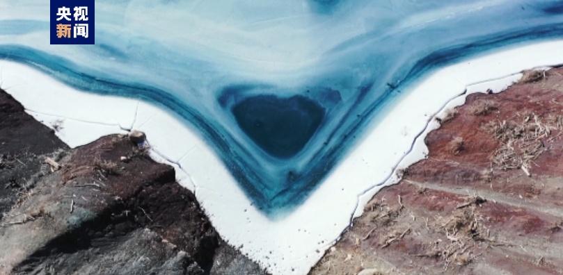 尤其令人驚嘆的是在湖的北邊,融化的湖水形成了一個自然的“海藍之心”,十分罕見,讓人驚嘆大自然的神奇。