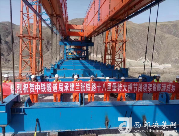 西部決策網(wǎng)訊(記者帥華鋒 杜杰 通訊員 黃貴彬 董桓民 攝影/喬志偉 呂清華)3月28日下午15時(shí)28分,由中國(guó)鐵路蘭州局集團(tuán)有限公司蘭州工程建設(shè)指揮部負(fù)責(zé)建設(shè)管理,中鐵隧道局承建的蘭張三四線鐵路十八里堡特大橋最后一段節(jié)段梁拼接完成,標(biāo)志著蘭張鐵路全線唯一一座采用節(jié)段預(yù)制拼裝簡(jiǎn)支箱梁的特大橋順利貫通,為后續(xù)架梁與整體道床施工提供了基礎(chǔ)條件。