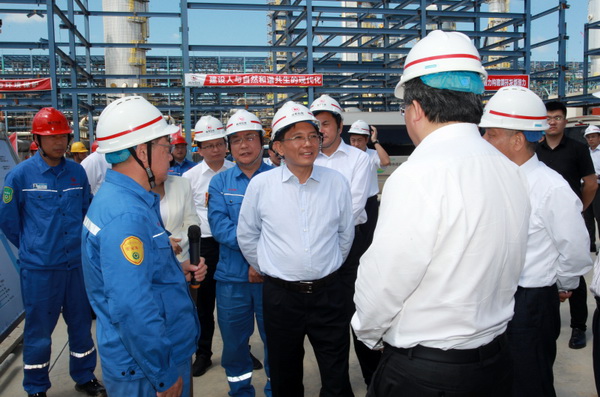 29日上午,孫金龍一行前往山東裕龍石化產(chǎn)業(yè)園,調(diào)研裕龍島煉化一體化項(xiàng)目。該項(xiàng)目位于煙臺(tái)市所轄龍口市,是山東省新舊動(dòng)能轉(zhuǎn)換、現(xiàn)有地?zé)挳a(chǎn)能供給側(cè)改革升級(jí)的重點(diǎn)項(xiàng)目,規(guī)劃產(chǎn)能4000萬(wàn)噸/年。孫金龍觀看了項(xiàng)目建設(shè)紀(jì)實(shí)片并參觀了裕龍石化展廳,聽(tīng)取了項(xiàng)目有關(guān)介紹,隨后前往3號(hào)島和2號(hào)島實(shí)地查看一期建設(shè)情況,現(xiàn)場(chǎng)考察項(xiàng)目實(shí)施、設(shè)備工藝、環(huán)境安全等情況,仔細(xì)詢問(wèn)污染物排放情況和廢水、廢氣及危險(xiǎn)廢物處置措施。他強(qiáng)調(diào),推動(dòng)發(fā)展方式綠色低碳轉(zhuǎn)型,產(chǎn)業(yè)綠色轉(zhuǎn)型升級(jí)是重點(diǎn)和關(guān)鍵。要健全生態(tài)環(huán)境法規(guī)政策標(biāo)準(zhǔn),強(qiáng)化生態(tài)環(huán)境準(zhǔn)入管理,加快促進(jìn)產(chǎn)業(yè)結(jié)構(gòu)調(diào)整優(yōu)化,通過(guò)高水平保護(hù)不斷塑造發(fā)展的新動(dòng)能、新優(yōu)勢(shì)。要指導(dǎo)支持企業(yè)開(kāi)展綠色低碳技術(shù)改造,嚴(yán)格落實(shí)環(huán)評(píng)審批要求和相關(guān)環(huán)保標(biāo)準(zhǔn)措施,確保環(huán)保設(shè)施建設(shè)到位、規(guī)范運(yùn)行和達(dá)標(biāo)排放,切實(shí)做好環(huán)境風(fēng)險(xiǎn)防范處置工作。