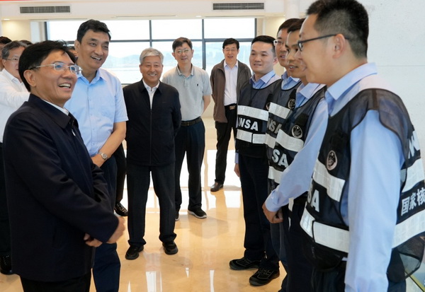 隨后,孫金龍深入到核電機(jī)組項(xiàng)目一線調(diào)研,實(shí)地查看3、4號(hào)機(jī)組工程指揮中心和施工現(xiàn)場(chǎng),了解核電項(xiàng)目智慧工地集成平臺(tái)運(yùn)行情況,到2號(hào)機(jī)組主控室,仔細(xì)詢問(wèn)指揮系統(tǒng)監(jiān)測(cè)報(bào)警處置情況,詳細(xì)了解機(jī)組安全運(yùn)行和監(jiān)管情況。他強(qiáng)調(diào),核安全是核電的生命線,是國(guó)家安全的重要組成部分。要深入貫徹總體國(guó)家安全觀和理性、協(xié)調(diào)、并進(jìn)的核安全觀,更好統(tǒng)籌發(fā)展和安全,始終堅(jiān)持安全第一、質(zhì)量第一的原則,嚴(yán)格核與輻射安全監(jiān)管,促進(jìn)核事業(yè)安全有序發(fā)展。要培育和樹(shù)牢核安全文化理念,進(jìn)一步強(qiáng)化底線思維和問(wèn)題導(dǎo)向,嚴(yán)格落實(shí)核安全責(zé)任,加強(qiáng)安全數(shù)據(jù)分析和經(jīng)驗(yàn)反饋,切實(shí)做好安全防范和預(yù)警處置,全面提高核安全監(jiān)管能力和水平,確保核與輻射絕對(duì)安全。孫金龍還看望慰問(wèn)了生態(tài)環(huán)境部華東核與輻射安全監(jiān)督站駐廠監(jiān)督員,與大家親切交談,勉勵(lì)大家不斷提高政治站位,時(shí)刻繃緊安全這根弦,發(fā)揚(yáng)“嚴(yán)、慎、細(xì)、實(shí)”的優(yōu)良作風(fēng),不斷提升工作本領(lǐng),認(rèn)真履行好核安全監(jiān)管職責(zé)。