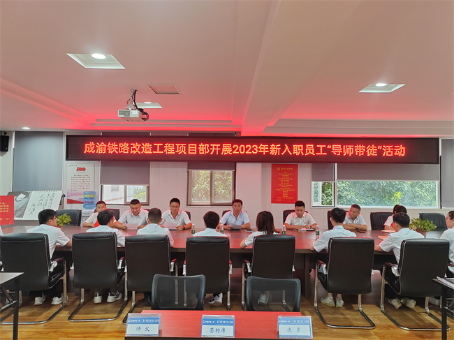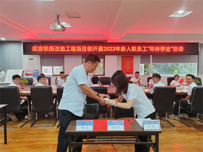 8月25日下午,中鐵一局七公司成渝項目部舉行導(dǎo)師帶徒結(jié)對儀式,項目領(lǐng)導(dǎo)班子、各部室負(fù)責(zé)人及主要管理人員出席活動(重點對象為新入職大學(xué)生),支部書記王濤主持儀式。